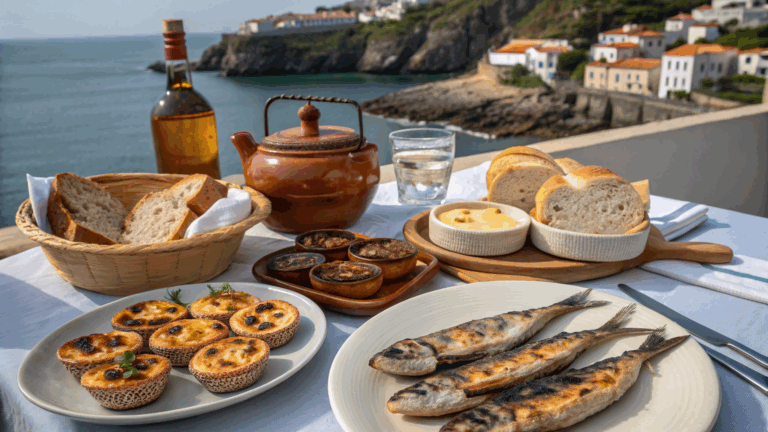 Les recettes autour des produits de la mer, comme les Ameijoas à Bulhão Pato — une préparation de palourdes à l’ail et coriandre — ou le Polvo à Lagareiro — poulpe cuit avec des pommes de terre et de l’huile d’olive — illustrent bien l’histoire maritime du pays. Pour finir un repas, les Pasteis de Nata ou encore le riz au lait restent des choix simples et appréciés de la pâtisserie portugaise.